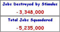 The conclusion is pretty grim, and certainly doesn’t mesh with what Obama has been saying out on the campaign trail. The sad truth is that instead of creating 3.5 million jobs since the stimulus plan was passed, it has resulted in the loss of 3.3 million jobs. Since the stimulus plan was supposed to save 1,613,000 jobs in addition to creating 1,887,000 jobs, and since it actually resulted in the loss of 3,348,000 jobs, it would now take the creation of 5,235,000 jobs, by January of 2011, to reach the original target.