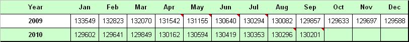 Instead of boring you with the month-by-month 2010 data, I went ahead and cut to the chase, skipping from December of 2009, where Mr. Kendall left off, to September of 2010, the latest data available from the 10/08/2010 report.