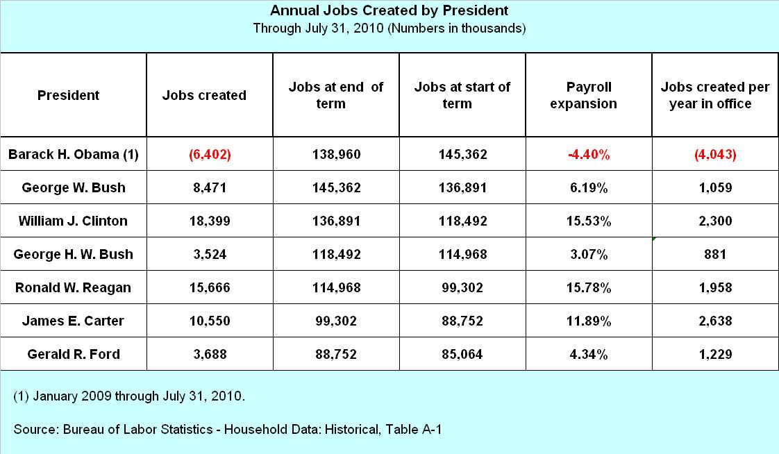Back in October of 2010, the left-wing media and White House tried to spin the myth that, “Obama created more jobs in 2010 than Bush did in eight years.” However, this delusion was busted in the first MythBuster series (here), simply by proving that at the time, not one single solitary job had been created during the Obama Administration. In fact at the time Mr. Obama was proudly presiding over a 2,991,000 loss in private sector jobs. So where are we today, 2 years later and 44 months into Mr. Obama’s agenda? Has Obama created more jobs than Bush?