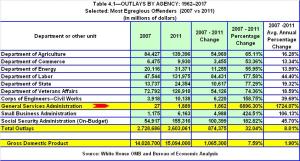 The Corps of Engineers–Civil Works’ four-year spending growth was 158.75%, with average annual growth of 39.69%. You would think they were actually building roads and bridges, but we know that’s not the case, so why have annual expenditures increased by $6.2 billion? Cut it.