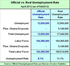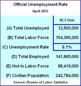 Now that economists, media pundits, and the Obama administration have weighed in with half-hearted and inaccurate theories respecting April’s decline in the U.S. unemployment rate, it’s time to set the record straight. We learned yesterday, that the official rate declined from 8.2% in March to 8.1% in April, but what’s really beneath the decline? To know, one must have an understanding of how the unemployment rate is calculated, and how to access the appropriate reports. From there it’s just a matter of simple mathematics. After poring through the numbers, I have concluded that the official unemployment rate actually rose to 8.3% in April, while the real unemployment rate ticked up to 11.1%.