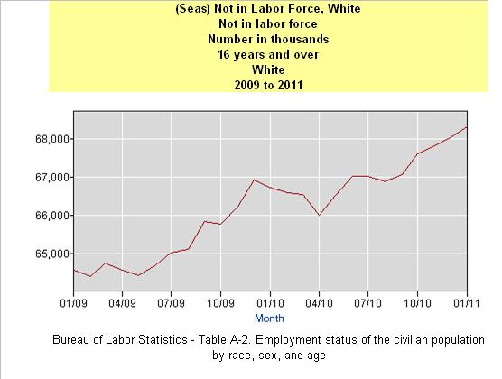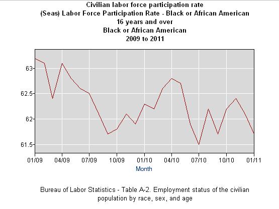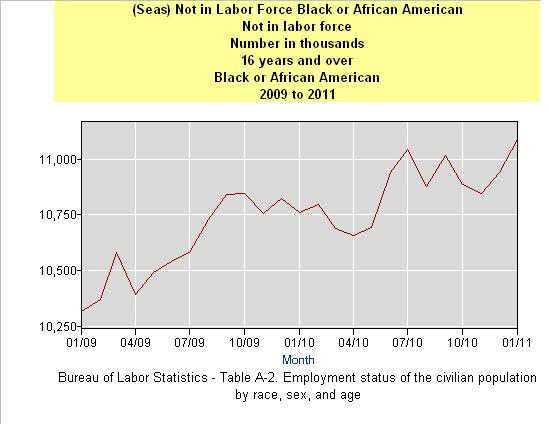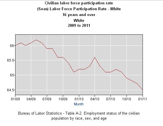 Can we call the American Recovery and Reinvestment Act of 2009 (ARRA) a failure yet? After all, the number of black and white Americans who are no longer counted as part of the labor force has reached a record high under the present White House occupant. Is this good or bad? According to the Bureau of Labor Statistics, since the beginning of February of 2009, an additional 772,000 black Americans, and an inconceivable 3,743,000 white Americans have left the labor force. Additionally, the labor force participation rate among both white and black Americans has declined to the lowest level since 1984. From the start of February of 2009 through January of 2011 the labor force participation rate among whites fell from 66.0% to 64.5%, while the participation rate among blacks declined from 63.2% to 61.7%.