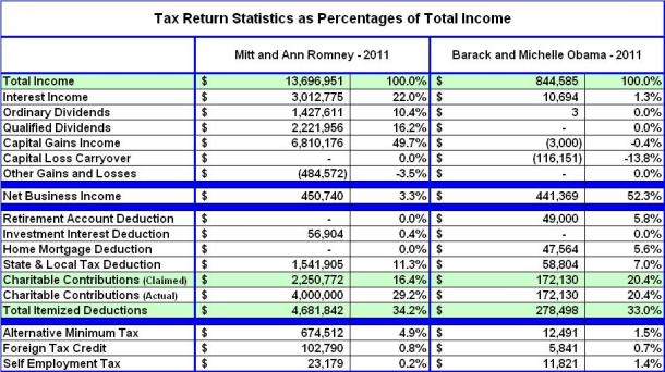 Following are some other key statistics from the Romneys and Obamas tax returns: