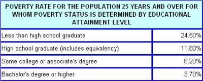 Well, according to the U.S. Census Bureau’s 3-Year Estimates, we can see (in the table below) that the poverty rate among those with less than a high school diploma is 24.5%, while it was 11.8% among high school graduates, 8.2% for those with some college, and only 3.7% for those with a Bachelor’s Degree or higher. So the chances of living a life in poverty are greatly enhanced for those who fail to graduate from high school, while being very slim for those attaining at least a Bachelor’s Degree. So does this mean that the playing field isn’t level? Do high achievers have a responsibility to take care of non-achievers? Did some of us start out on a different playing field, other than kindergarten? And is it possible for Obama’s wealth redistribution vision to turn back the hands of time and place everyone back on Square One? The answers to all of the above — a solid “No”.