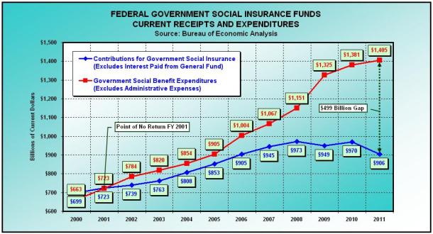 From 56.4% in 2001, the Debt-to-GDP ratio peaked at 69.9% in 2008. During the era, the national debt increased from $5.7 trillion in 2001 to $9.9 trillion by 2008. The debt has since skyrocketed as a result of the new War on Wealth. Although the gross public debt increased by $4.2 trillion, from 2001 through 2008, expanding from $5.7 to $9.9 trillion, it has subsequently burgeoned by another $6.4 trillion in half the time, since the commencement of the War on Wealth. From 2009 through 2012, the federal debt will have ballooned from $9.9 trillion to $16.3 trillion. The debt will ultimately reach a peak of 104.8% of GDP by the end of 2012, and is expected to increase to 107.8% by the year 2014.