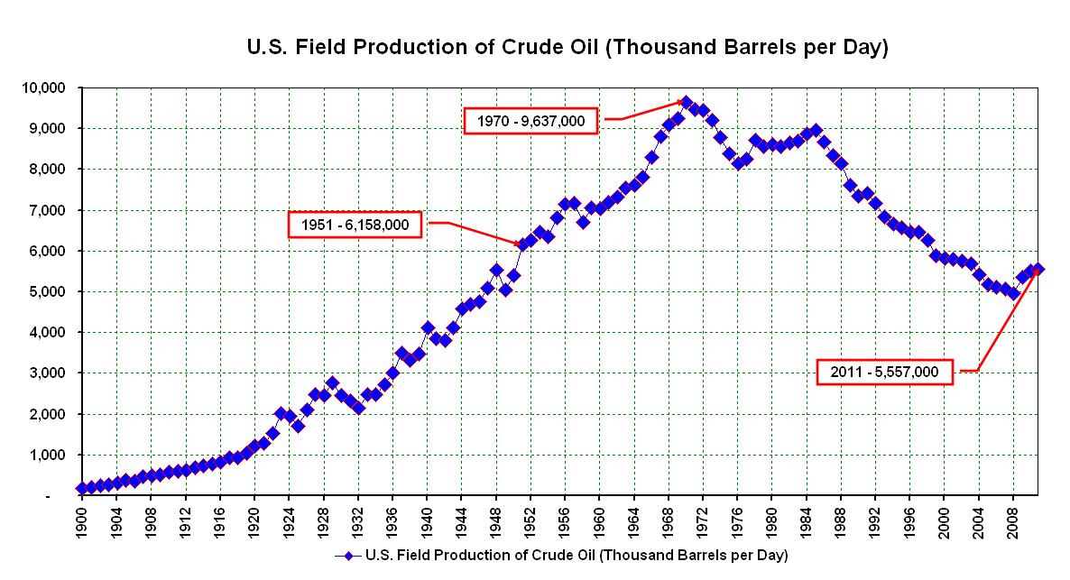 Since we know that the world’s population is increasing, not decreasing, more gasoline production is constantly required, not less. It doesn’t take a rocket scientist to figure that out. Thus, the only way to reduce gasoline prices, in the face of rising global demand, is through greater production. Yet, U.S. oil production has been on the rise since 2009, while demand has declined. So, why is gasoline stuck above $3.25 a gallon?