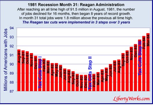 As the website Liberty Works so aptly reminds us, “President Obama and the Democrat Congress have implemented a series of measures that defy the lessons of past recessions”, especially that of 1981, which was by some measures worse than this one.