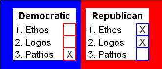 Perhaps the most common way of conveying a pathetic appeal is through narrative or story, which can turn the abstractions of logic into something palpable and present. The values, beliefs, and understandings of the [candidate] are implicit in the story and conveyed imaginatively to the [voter]. Pathos thus refers to both the emotional and the imaginative impact of the message on an audience, the power with which the [candidate’s] message moves the audience to decision or action.” ~ Derived from: Ramage, John D. and John C. Bean. Writing Arguments. 4th Edition. Needham Heights, MA: Allyn & Bacon, 1998, 81-82.