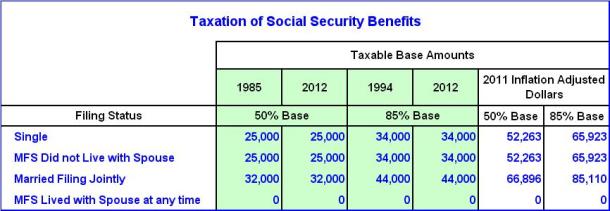 In order for 50% of your social security benefits to be taxable, your income from other sources (both taxable and tax exempt) must be greater than $17,620 [17,620 + 7,380 (½ of social security benefits) = $25,000].