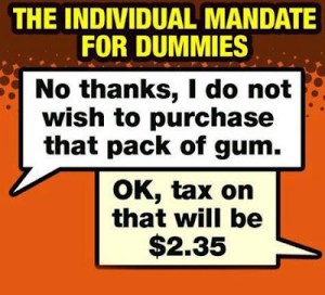 You’ve got to give it up for the Grubers (i.e. Democrats), for pulling the wool over our eyes and sneaking this baloney into law. As if their deception wasn’t bad enough on its own, what’s even more disturbing is their blatant persistence in calling this “state of being” excise tax a fee or penalty, even after the Supreme Court ruled it to be a tax. One has to wonder just who they are trying to fool at this point? Certainly members of the middle class, who are beginning to feel the pinch, are not fooled.